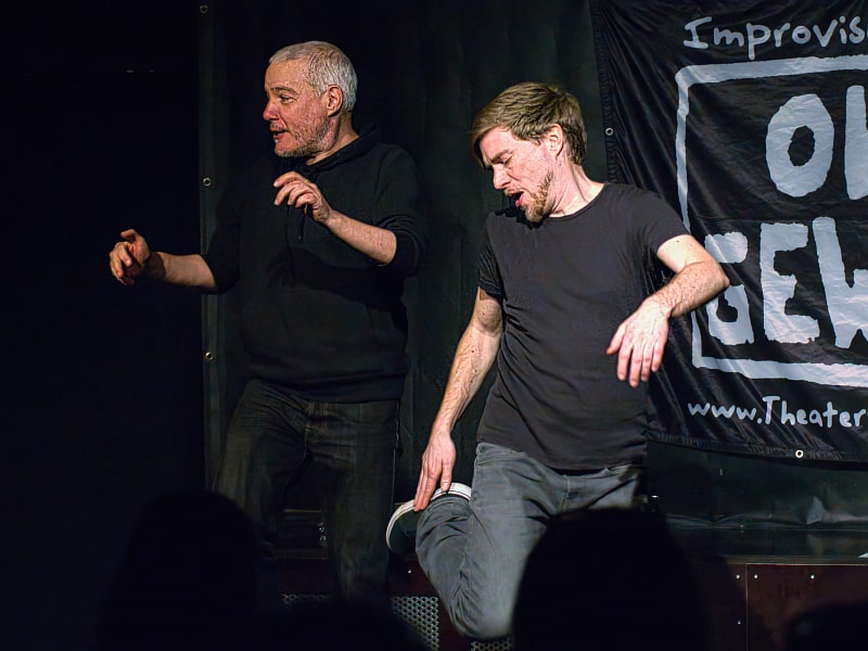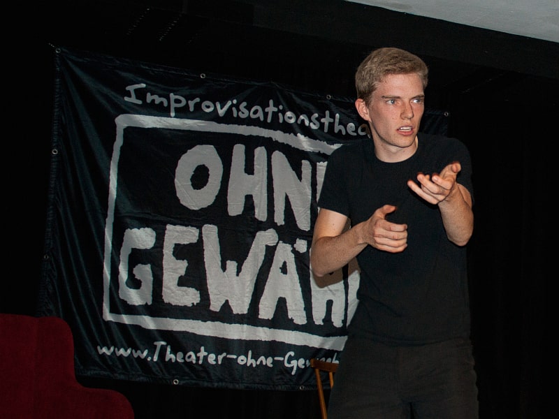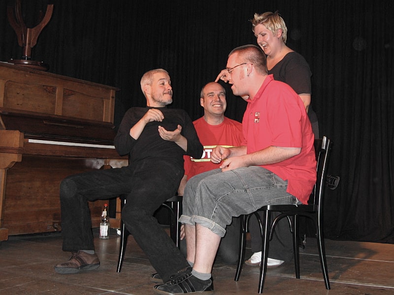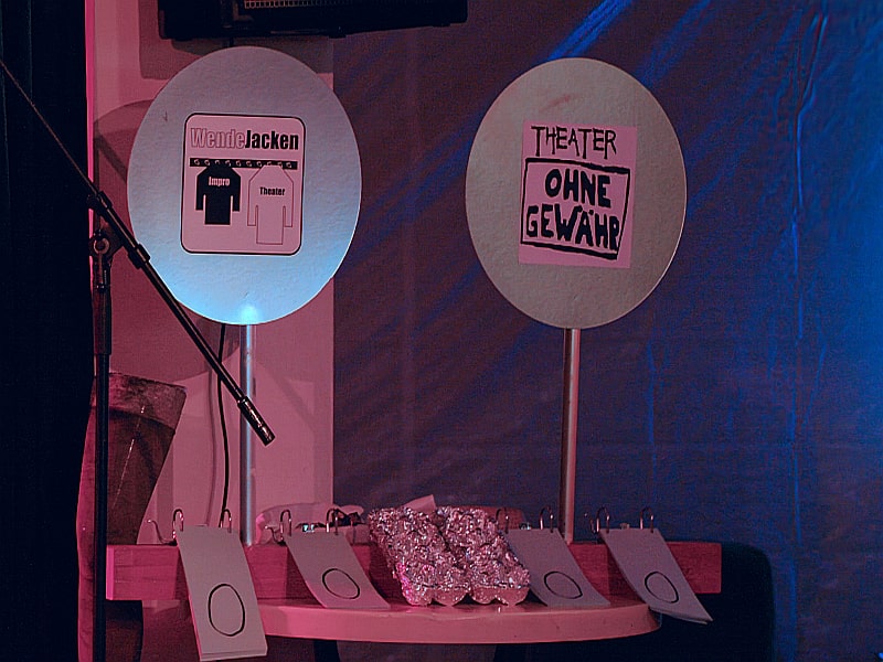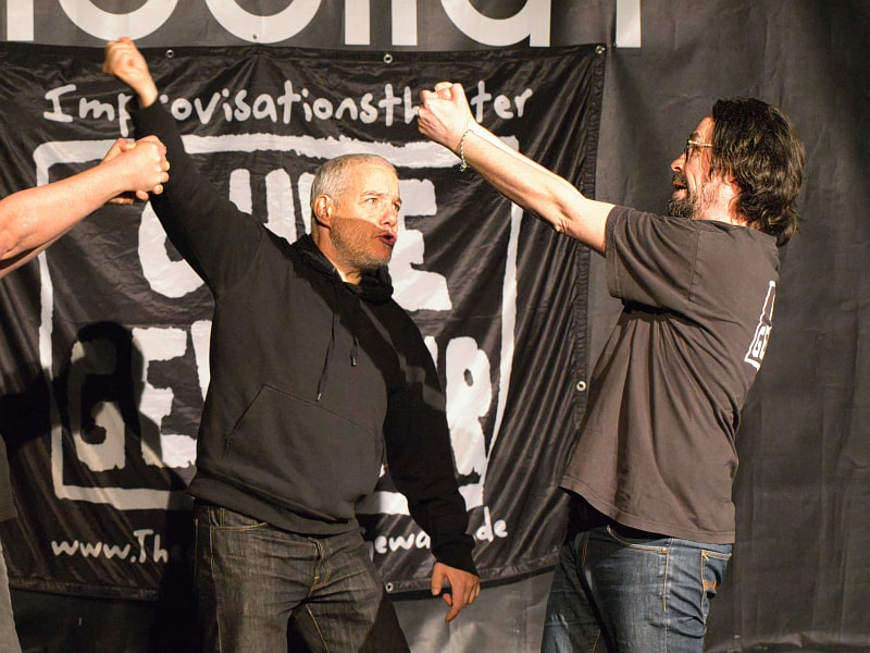 Ohne Gewähr spielt für Sie viele verschiedene Formate des Improvisationstheaters -die ImproShow, den Impro-Krimi, das ImproMatch, die Weihnachts-Improshow und die Langform (Unsere speziellen Formate für Firmen finden Sie unter dem Reiter "Unsere Angebote").